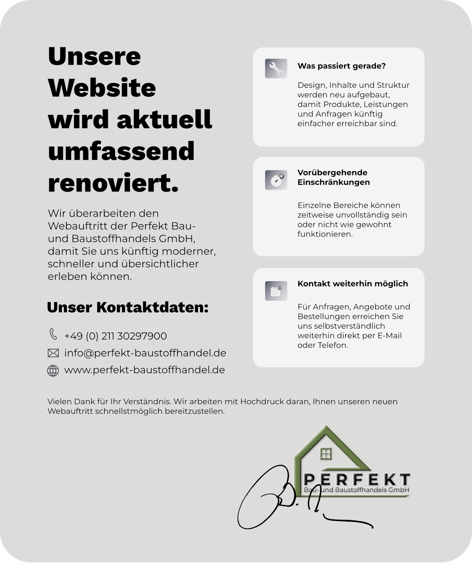 Als PERFEKT Bau- und Baustoffhandels GmbH greifen wir auf ein breit aufgestelltes Partnernetzwerk aus Herstellern, Handwerksbetrieben und Dienstleistern zurück, um Ihr Bauvorhaben effizient und zuverlässig zu realisieren. Ob Neubau, Sanierung oder Modernisierung – wir kombinieren hochwertige Baustoffe mit praxisnaher Beratung und abgestimmten Services, damit Sie genau die Lösung erhalten, die zu Ihrem Projekt passt